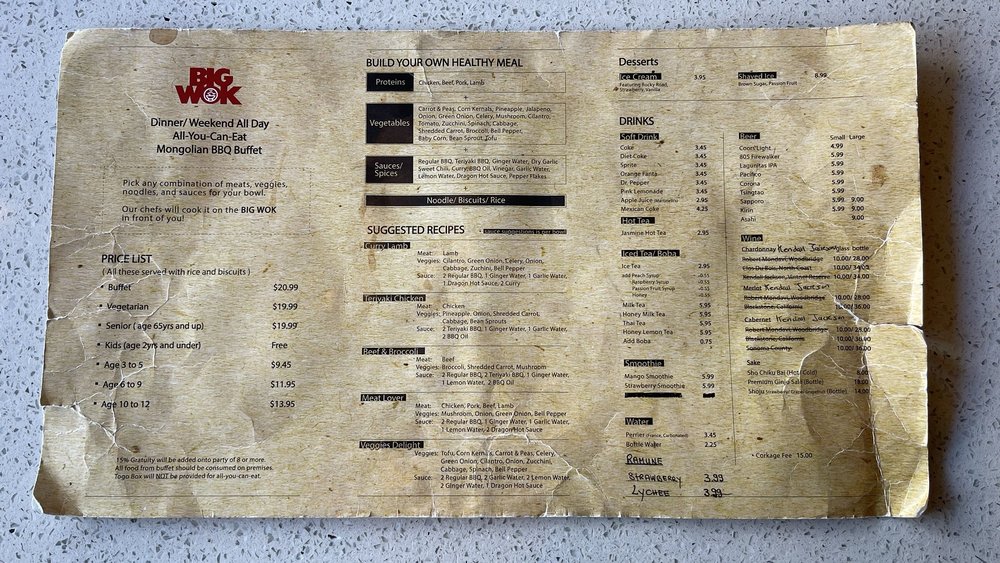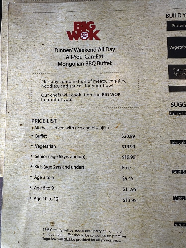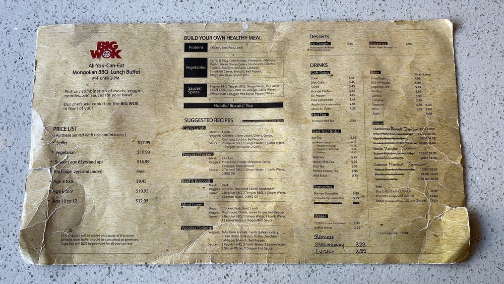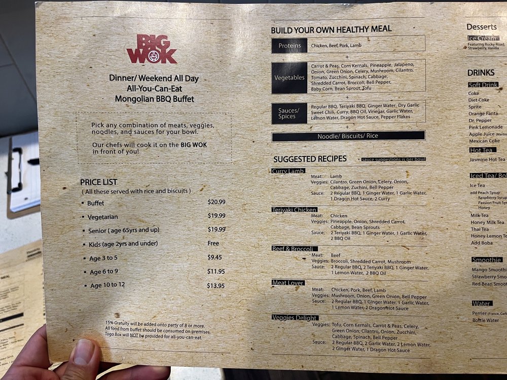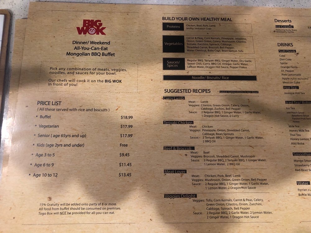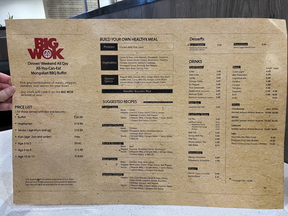 Introducing the Menu at Big Wok Mongolian Bar-B-Q